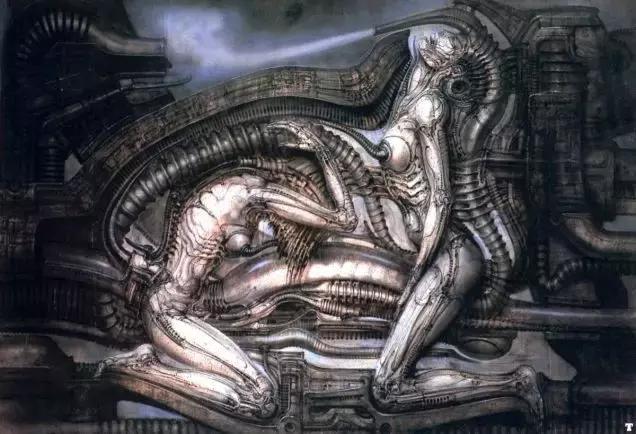 了解弗洛伊德的人一定知道,这位心理学大师,最大的“特点”,便是无论什么事都要和“嘿嘿嘿”扯到一起。而受其影响的H.R.吉格,将他的梦境绘制成画,同时加入了“嘿嘿嘿”成分,形成了一种独特的风格,这种风格被称为:生物机械。
