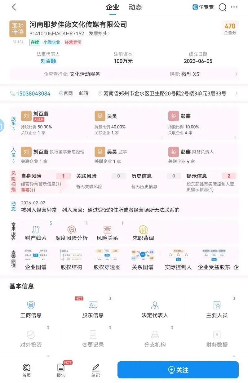 企查查显示,这些与中金支付合作的商户,几乎都是小微企业,其中河南耶梦佳德文化传媒有限公司、四川波伦塞亚科技有限公司等企业,已分别在2026年1月27日和2025年12月8日,被当地市场监管部门列入经营异常名录。但仍有消费者反映在3月遭遇扣费。