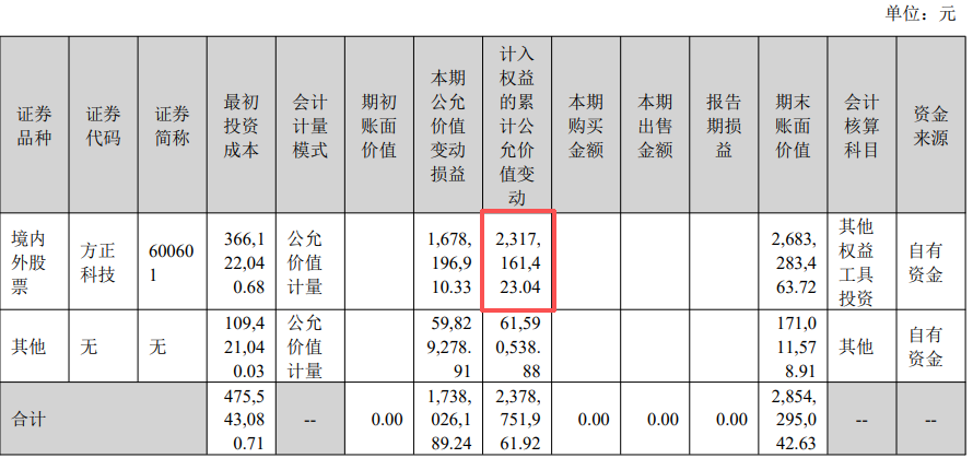 主业之外,胜宏科技还是“炒股高手”。公司去年买入方正科技(600601.SH),投资成本3.66亿元,期末账面价值已升至26.83亿元,账面浮盈约23亿元,收益率超过600%。