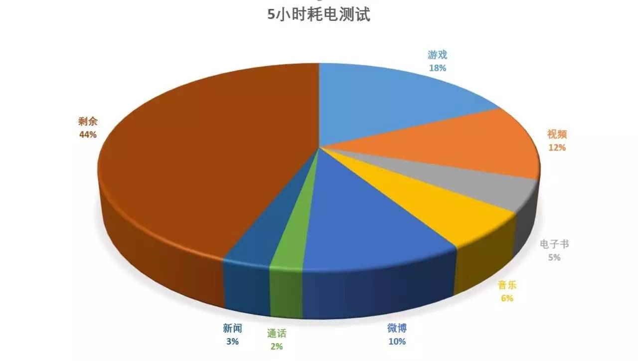 充电5分钟,通话2小时突出的不仅仅是快充,同时也隐含着续航的持久性。实际测试,在手机亮度和音量50%、并清除后台无关应用的情况下,经过1小时游戏、1小时在线视频播放、1小时电子书、半小时在线音乐播放、半小时微博、半小时通话、半小时资讯APP浏览,5小时测试时长,涵盖了日常中度使用的大部分场景,最终结果共消耗56%电量。这样的成绩转化到日常使用的话,基本上可以维持一天的中度使用,到晚上充电的时候预计剩余30%左右的电量。
