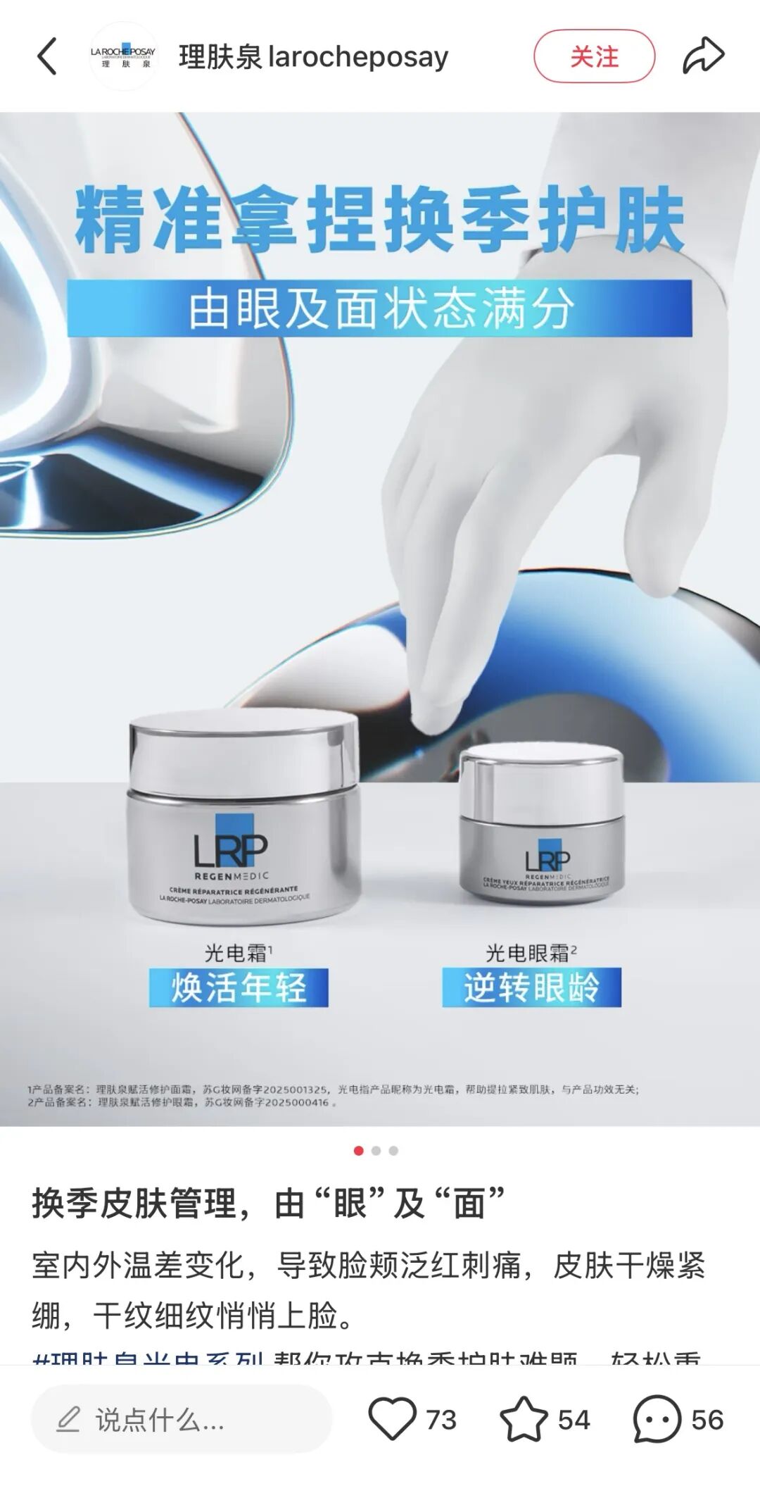 2、理肤泉收集消费者与超级B5精华的故事,同时关注由眼及面的换季护肤状态,同步推出光电霜及光电眼霜;