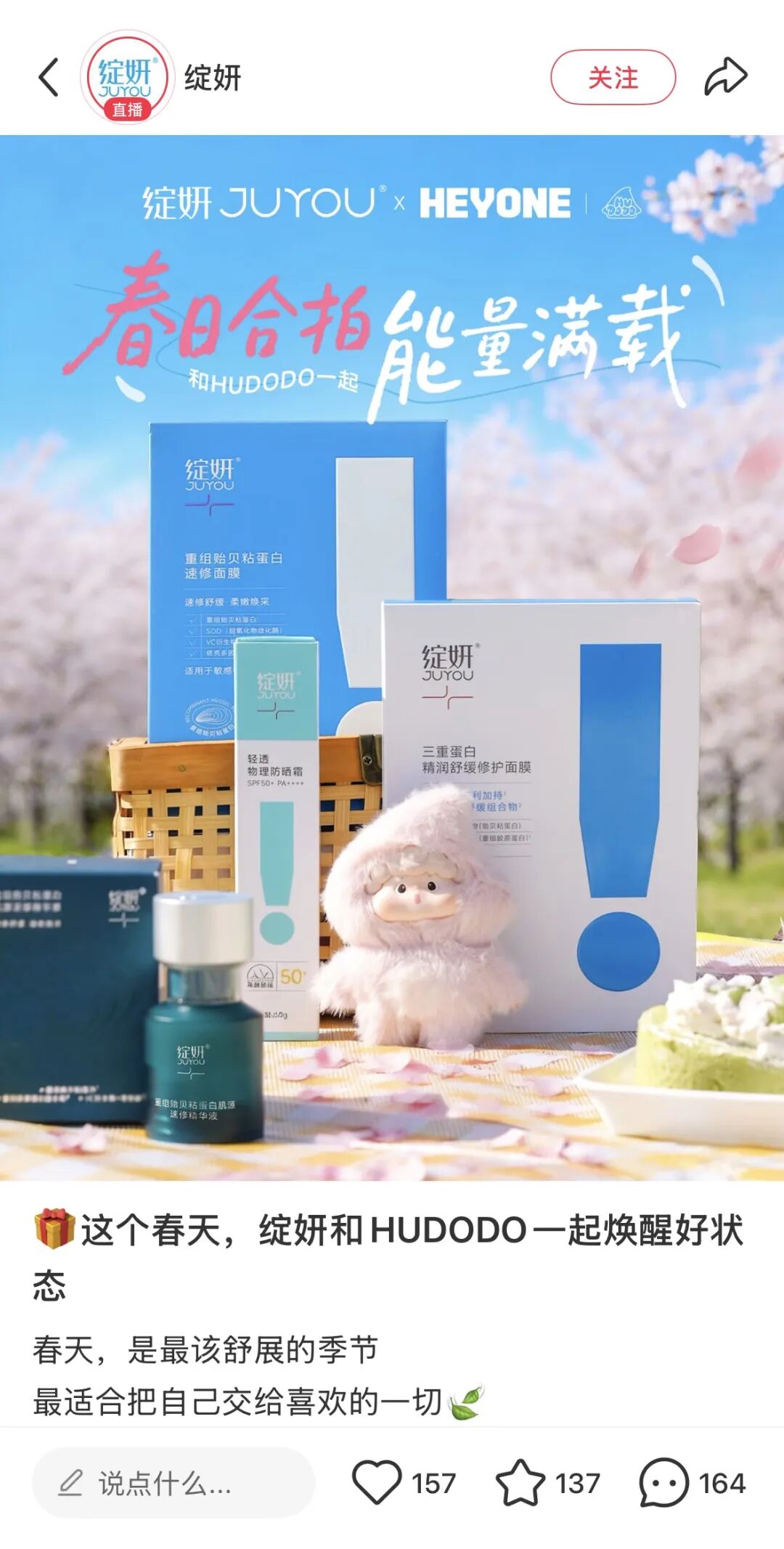 3月2日,发布关晓彤「彤」款修护公式,涵盖自修精华、超修精华霜、思维面霜三款产品,针对性解决春敏困扰;