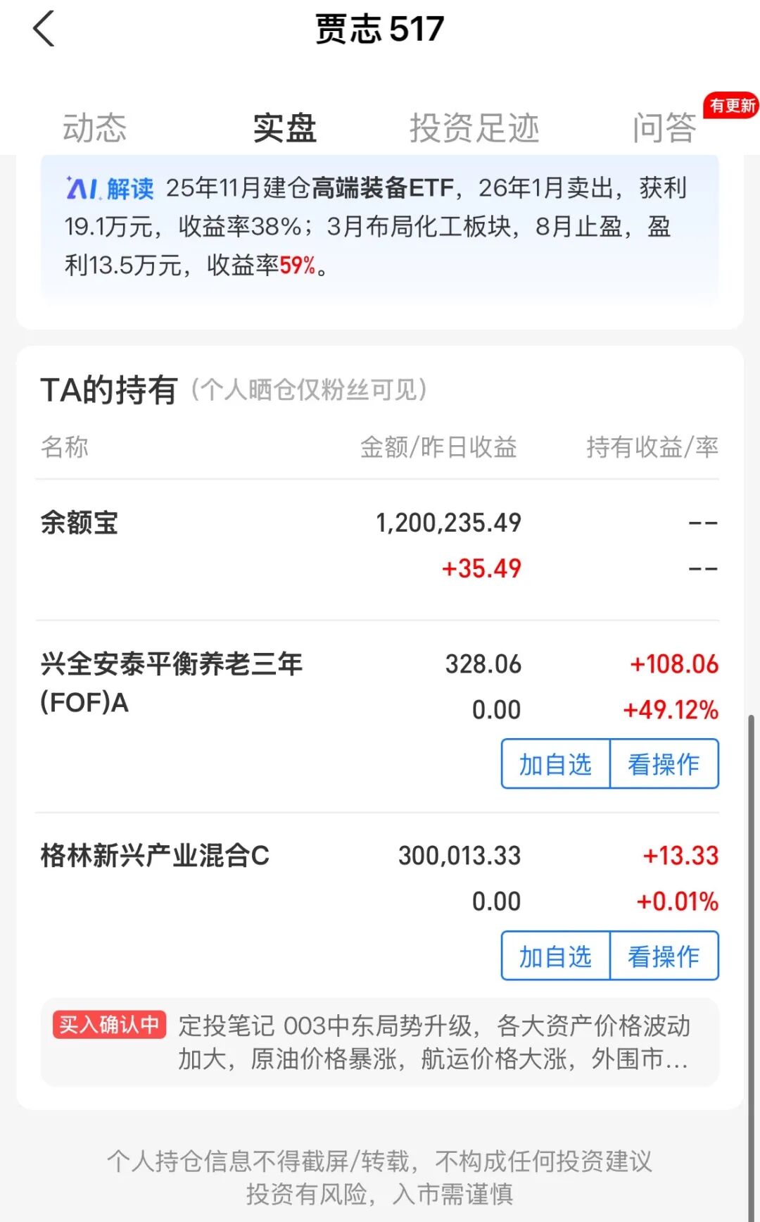 图源:蚂蚁财富社区“贾志517”实盘汇总