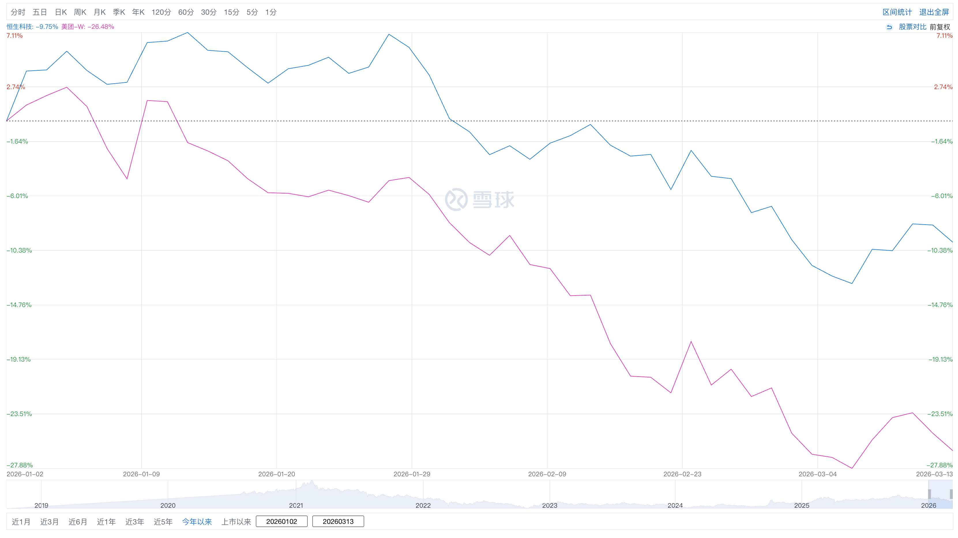 恒科大盘在跌,市场情绪如此,所以美团也跟着跌?问题是美团比恒科跌得更早、也跌得更狠,超跌必有理由。