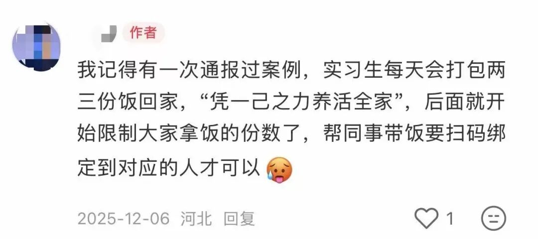 有人每天打包N份饭,“凭一己之力养活全家”,倒逼公司实行“扫码领饭”的新制度。