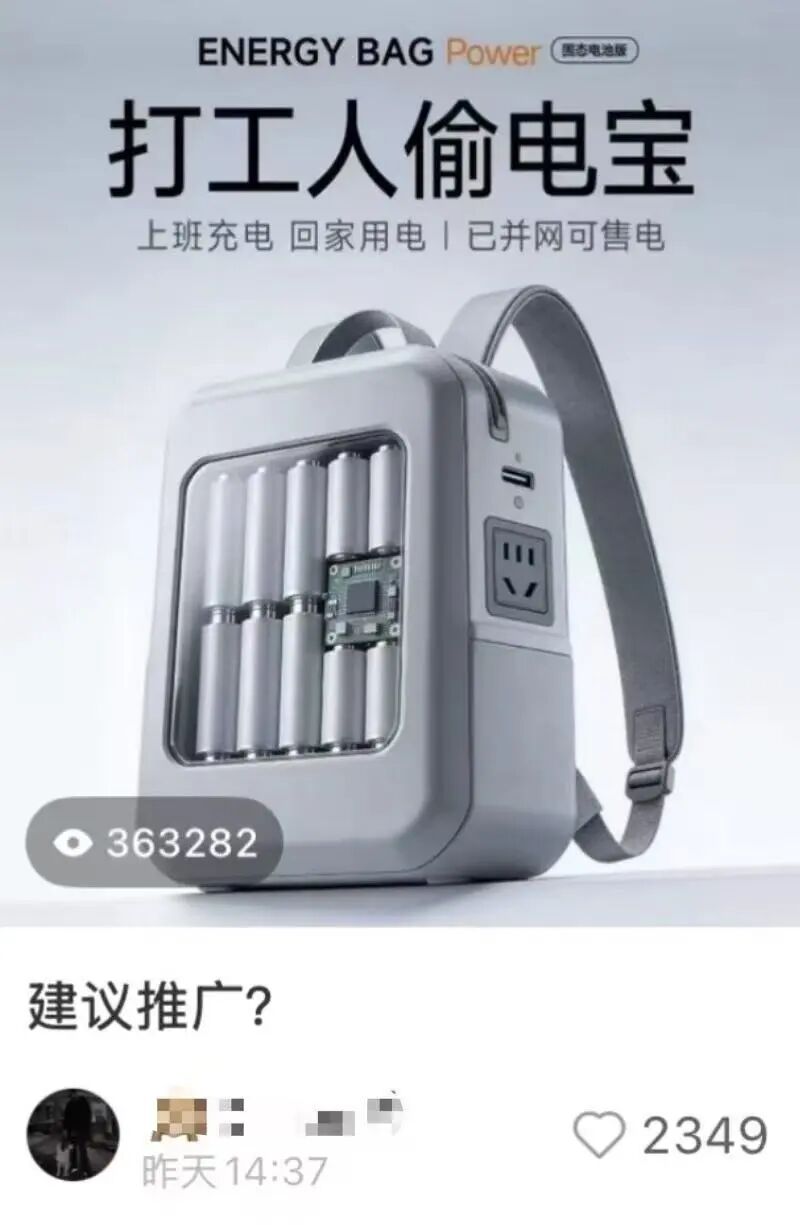 起因是她在小红书刷到一个帖子,一眼看过去,密集恐惧症都要犯了——一个极具质感的金属框里,塞着密密麻麻的电池阵列,中间还裸露着电路板、各种接口和控制模块。