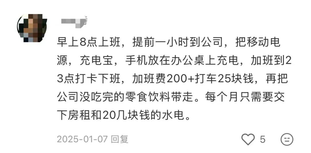 她算过一笔账:自己生活里的大部分用品,比如水、电、零食,甚至厨房用具,都可以从公司里薅。