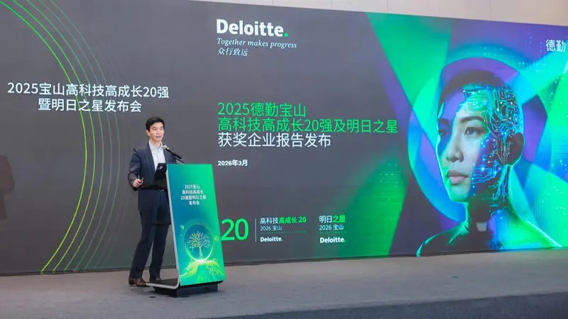 近日,2025德勤宝山高科技高成长20强及明日之星项目榜单揭晓暨发布会在上海宝山举行。活动由宝山国投集团与德勤中国联合主办,旨在发掘区域科创中坚力量,搭建政企合作桥梁。德勤中国发布《德勤宝山高科技高成长评选报告》,政企双方启动共建“宝山科创企业服务生态圈”。宝山区委常委、副区长王鼐出席。