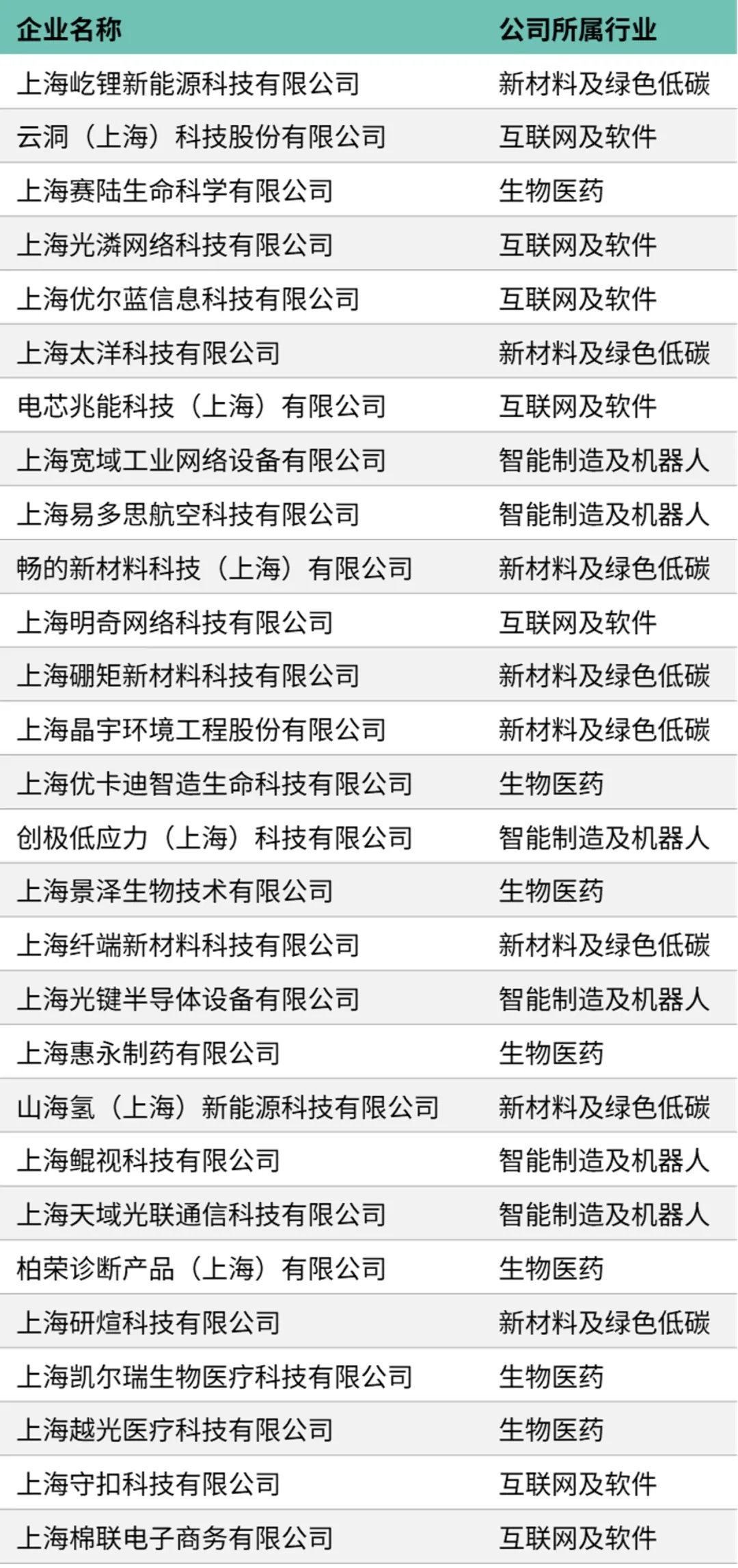 注:企业排名不分先后