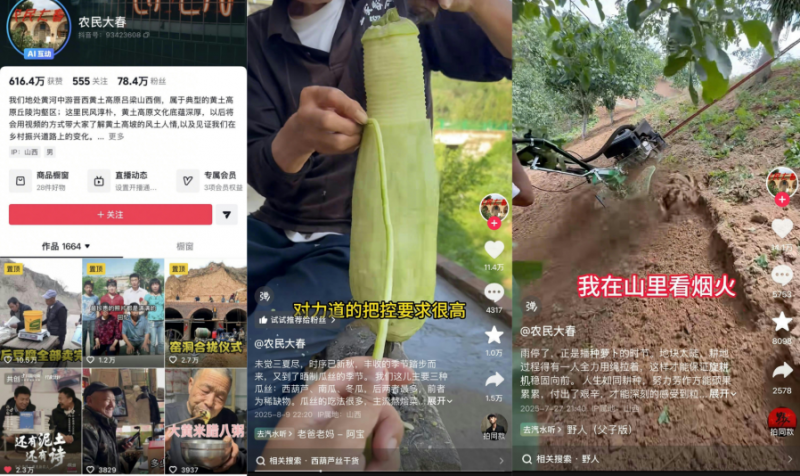 这些新农人的努力,不仅让家乡的土特产破圈走红,更让濒临失传的乡土智慧和技艺重焕生机。@农民大春 记录的陕北“窑洞合拢仪式”,收获2.7万点赞,让网友们第一次见识到这份古老民俗的仪式感与烟火气;颜姐的短视频里,随口而出的洪湖俗语、荷塘边地道的炖藕做法,让网友们纷纷在评论区“交作业”,分享自己的烹饪成果。从单纯的产品销售,到带有文化内涵的沉浸式体验,农产品背后的故事、工艺与传承,被更多人看见,真正实现了文化传承与市场变现的双赢。