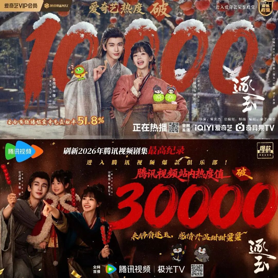 对于长视频平台而言,拼播模式能让合作双方共享制作与宣发成本,大幅降低单一平台的投入风险,同时叠加双方的用户池优势,助力实现流量与商业收益的最大化。事实也印证了这一模式的价值,《逐玉》凭借拼播创造了行业新纪录,成为内娱首部在爱奇艺与腾讯视频双平台均实现热度破万的剧集。