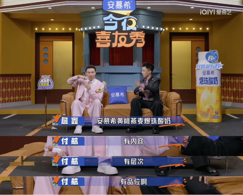 而这种“情绪价值”正成为品牌筛选项目的金标准。例如安慕希深耕喜综多年,今年开年又选择与《今夜喜友秀》合作,就是要将喜剧综艺自带的轻松快乐气质与品牌形象完成强绑定,持续沉淀属于品牌的“快乐资产”。
