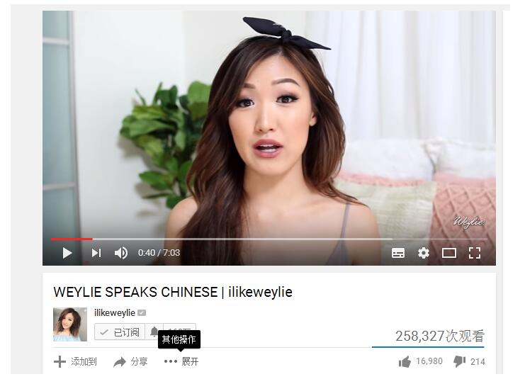Weylie是个土生土长的美国华裔,也就是俗称的ABC(American Born Chinese)。从2007年第一次在Youtube上发布视频以来,Weylie基本保持着周更的频率,累计发布超过300支视频,而这300+视频,都是用英文录制的。
