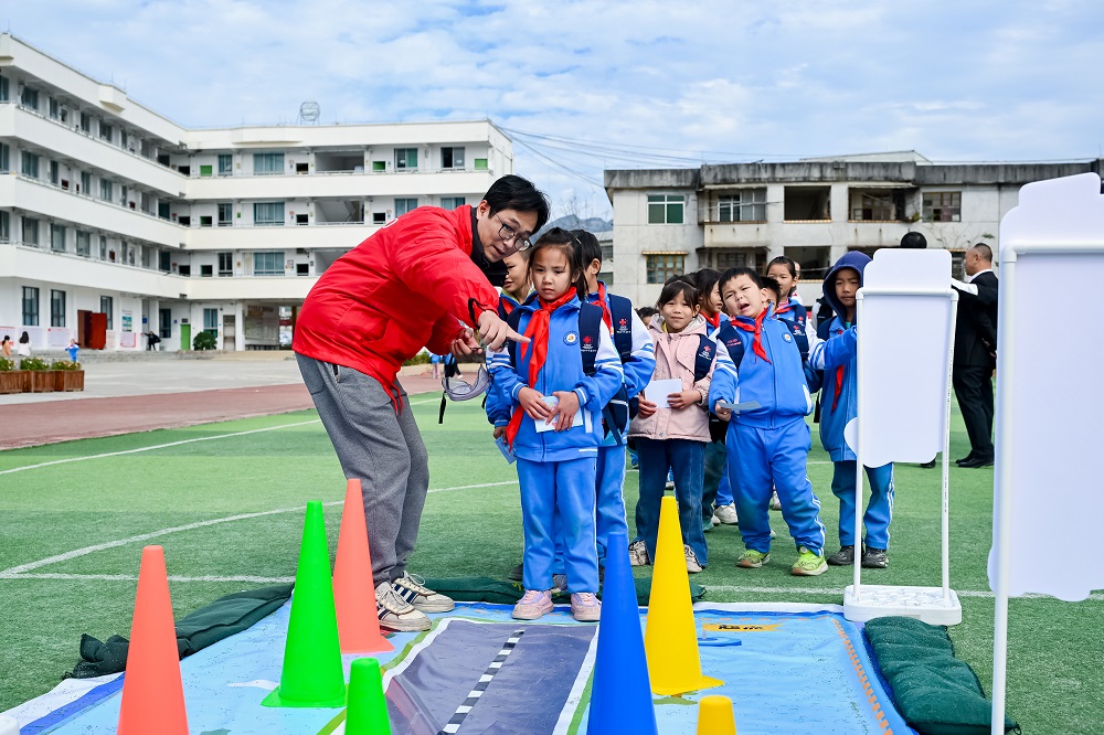 与此同时,两堂别开生面的课程也在校园里生动开展。在“座驾精灵”交通安全课堂上,员工志愿者们化身为亲切的讲师,不仅将复杂的交通规则转化为有趣的互动游戏,让孩子们在欢笑中记住如何保护自己,还生动讲解了汽车工程知识,激发孩子们对科技制造的兴趣。而在红十字基金会专业讲师的指导下,孩子们认真练习急救知识,对生命的敬畏与互助的种子在此刻悄然种下。这些知识上的投入,与校医室相辅相成,让他们掌握保护自我的能力。