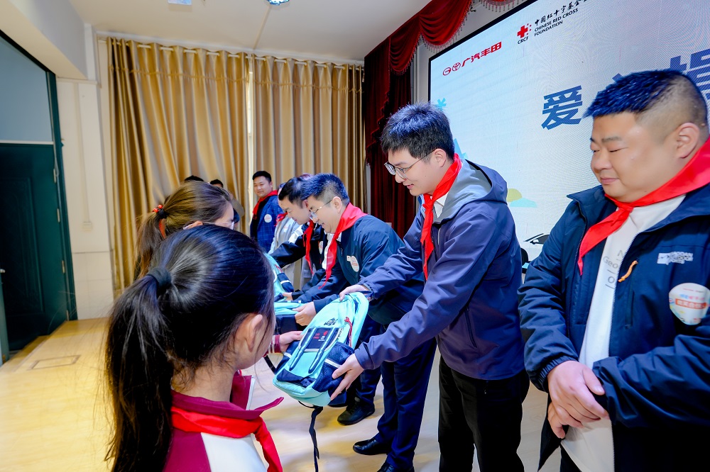 除了共同见证博爱校医室的启用,广汽丰田的经销商伙伴、员工及车主志愿者还化身“微笑合伙人”,将一个个特别定制的安全书包送到了孩子们手中。这些书包上的反光条、应急安全哨、浮板等设计,每一处细节都凝聚着对孩子们平安上下学的殷切期盼。从校内的健康守护,到校外的出行安全,关怀的维度在不断延伸,共同编织着一张更密、更暖的守护之网。