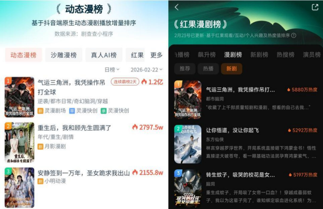 有两个值得一提的案例。第一个案例来自腾讯系,漫剧《气运三角洲:我凭操作吊打全球》的制作公司与腾讯达成合作,内容直接取材自腾讯游戏《三角洲行动》,里面充满了游戏玩家才懂的梗,上线29小时播放破2亿,登顶AI漫剧春节档。它的出圈,既能为游戏IP注入了新的内容活力、服务于玩家的社区生态,又能为游戏IP本身拉新促活。