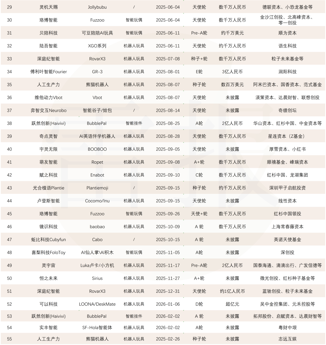 资本也相当活跃。雷报不完全统计,自2024年至今,国内AI玩具赛道已至少有55起投融资事件,共计有11起亿级、19起千万级投资。