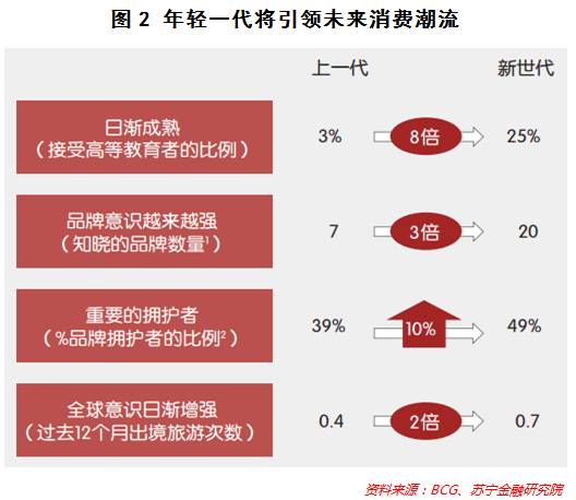在上述两方面因素的影响下,新世代的消费将以14%的年均增速增长,这一增速是上一代消费者的2倍。