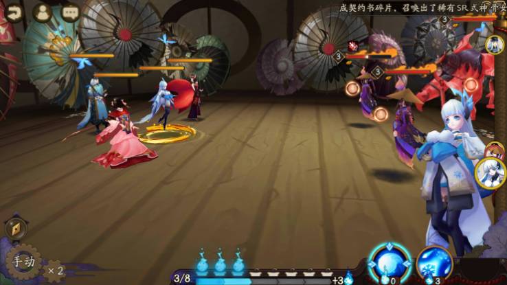 《阴阳师》战斗模式是经典的回合制,算是日式RPG传统表现方式,让玩家有充足的时间考虑下一步的操作。玩家可以在手动和自动两种模式切换,满足休闲和重度玩家的需求。战斗场景可以随意调整,每一个关卡的场景都不一样,玩家可以随时停止指令,可以从不同角度观察游戏场景,给予玩家全方位的视觉感受。游戏的画面打击感非常强烈的,技能的释放造成大幅度画面抖动,这让玩家感觉非常带感。