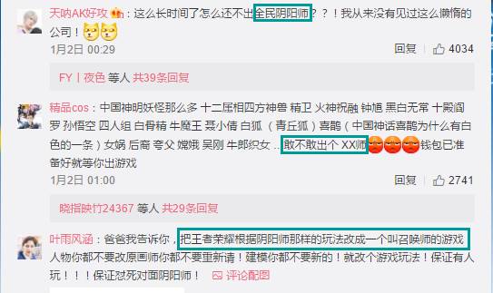 腾讯游戏微博下求山寨《阴阳师》相关评论