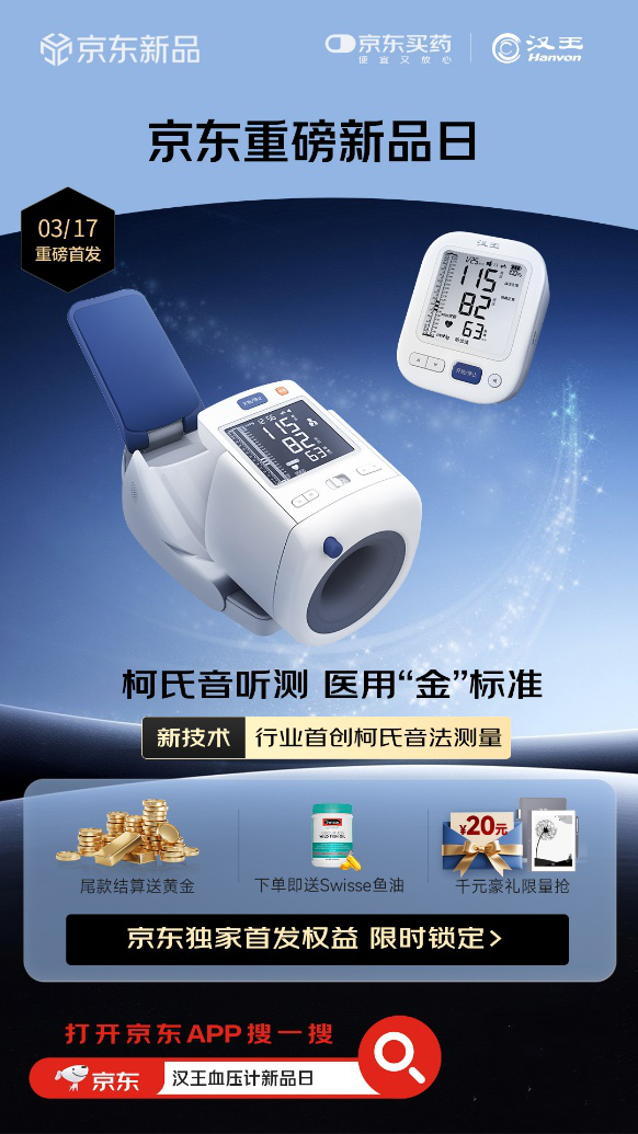 3月17日,健康科技品牌汉王旗下两款柯氏音医用电子血压计新品8600与3100B于京东健康平台全网独家首发,共同为消费者带来精准、便捷的全新血压管理体验,满足从家用入门到专业旗舰的不同需求。即日起,消费者登录京东APP搜索“汉王血压计新品日”即可选购新品。