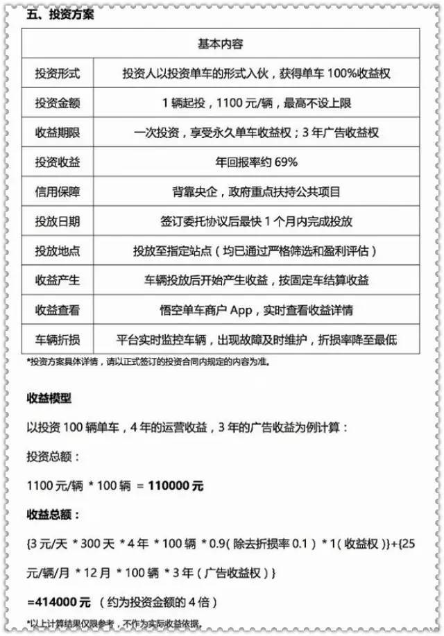 雷厚义倒也不是一个没有想法的人,当初为了救活悟空单车,还用上了「合伙人模式」,把共享单车所有权直接卖给合伙人,让合伙人获得单车的永久收益权和 3 年的广告收益。