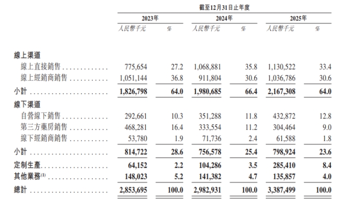 图4:可孚医疗各销售渠道收入明细(2023-2025年)