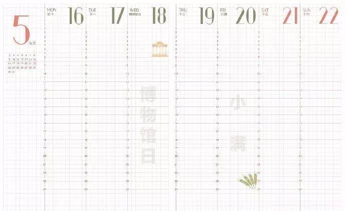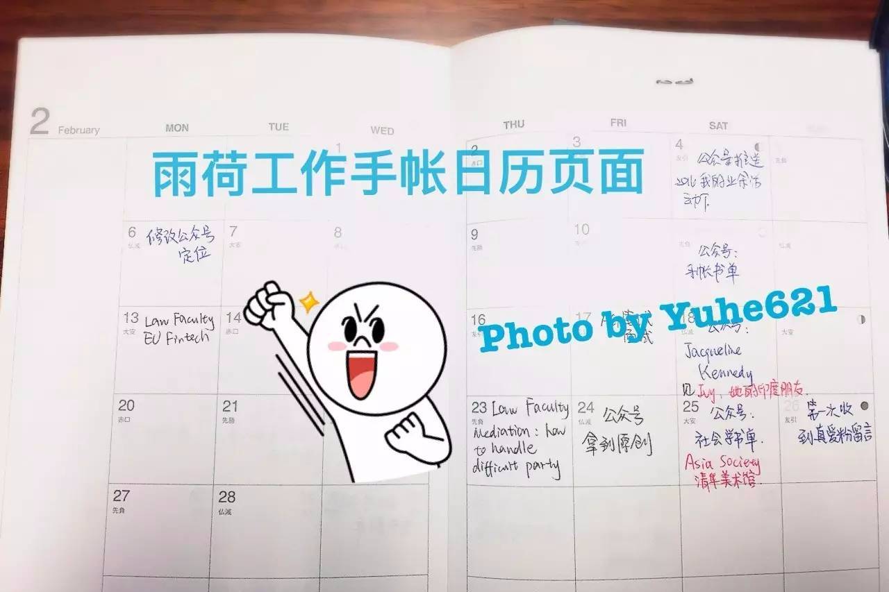 每月日历页面适合制定本月已经确定时间、地点的日程,比如开会、某个组织的活动。这样,无论何时需要添加新的日程,已经有安排的时间段 和 空闲的时间段 都一目了然。