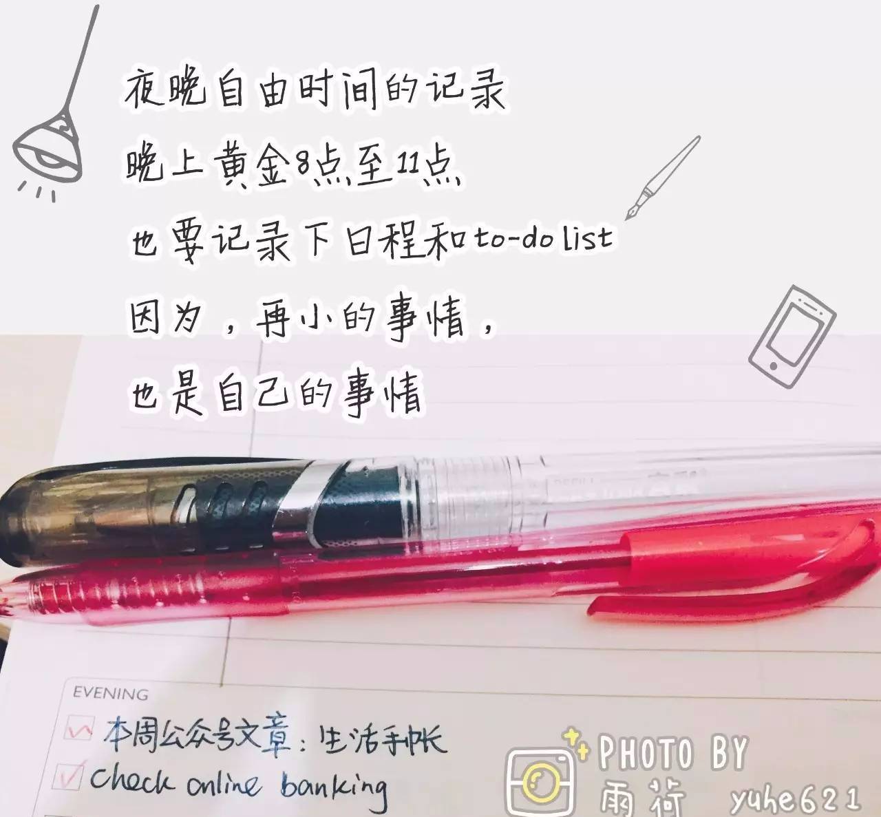 剩下的时间可能晚上回去只能处理一些生活杂事。很多时候白天想起来晚上要去做什么什么,如果不写下来的话,过一会儿可能就忘了,然后第二天才想起来!再小的事情,也是自己的事情。所以晚上的时间,我也会写下to-do list。