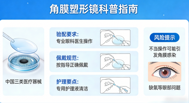 角膜塑形镜属于国家三类医疗器械,其验配、佩戴、护理均有严格的专业要求,不当操作可能引发角膜感染、缺氧等眼部问题,消费者需重点注意以下五点: