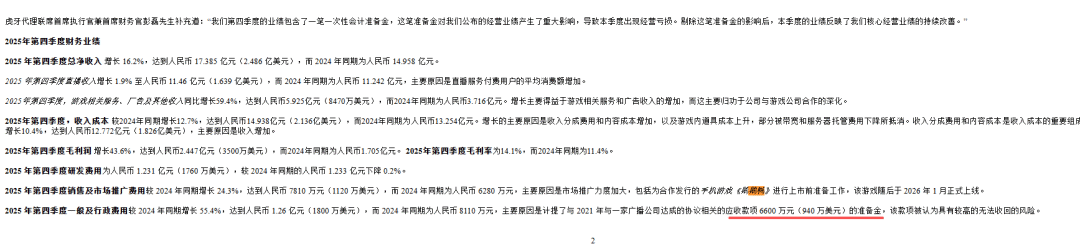 但这样带来的潜在好处是:接下来的2026年Q1、Q2,随着《鹅鸭杀》的全面公测,和商业化能力的不断提升,它必然会给虎牙带来大量的收入增长。