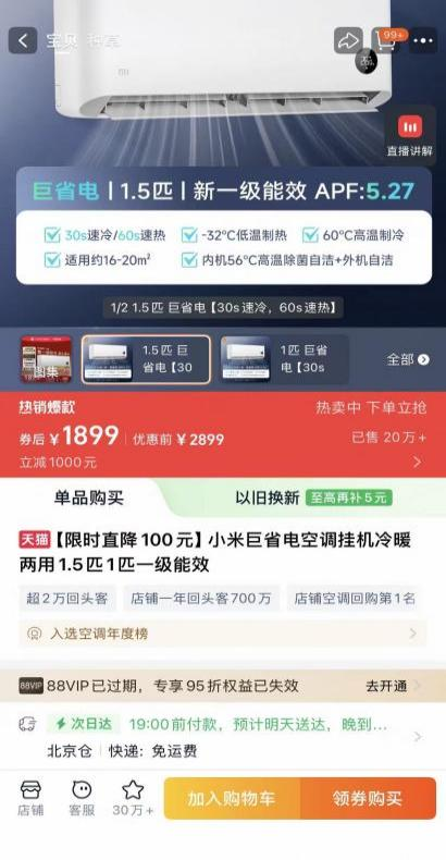 作为对比,奥克斯天猫旗舰店内1.5匹省电侠Pro售价1996元,同一规格小米1.5匹巨省电空调挂机定价1899元,而1.5匹华凌超省电Pro定价仅为1571元。