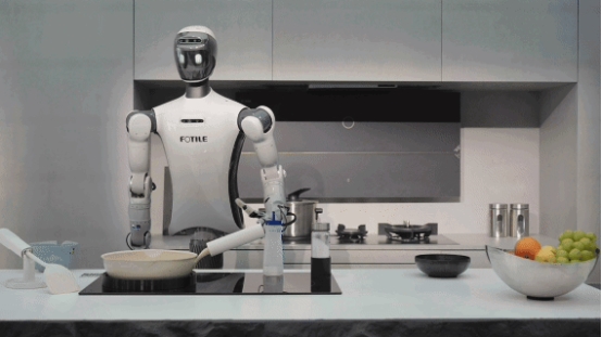 厨房是家庭服务场景中最为复杂的高地,也是具身智能必须攻克的核心战场——食材、容器、工具品类繁多且具备柔性、透明、易碎等复杂特性;无色液体与反光容器是视觉感知的固有难题,油烟更带来不可预测的扰动;从开、关、舀、倒到搅、拌、翻、转,机器人需要掌握十余种精细动作并实时动态调整;而水、火、电的共存,则对安全性提出了极高要求。