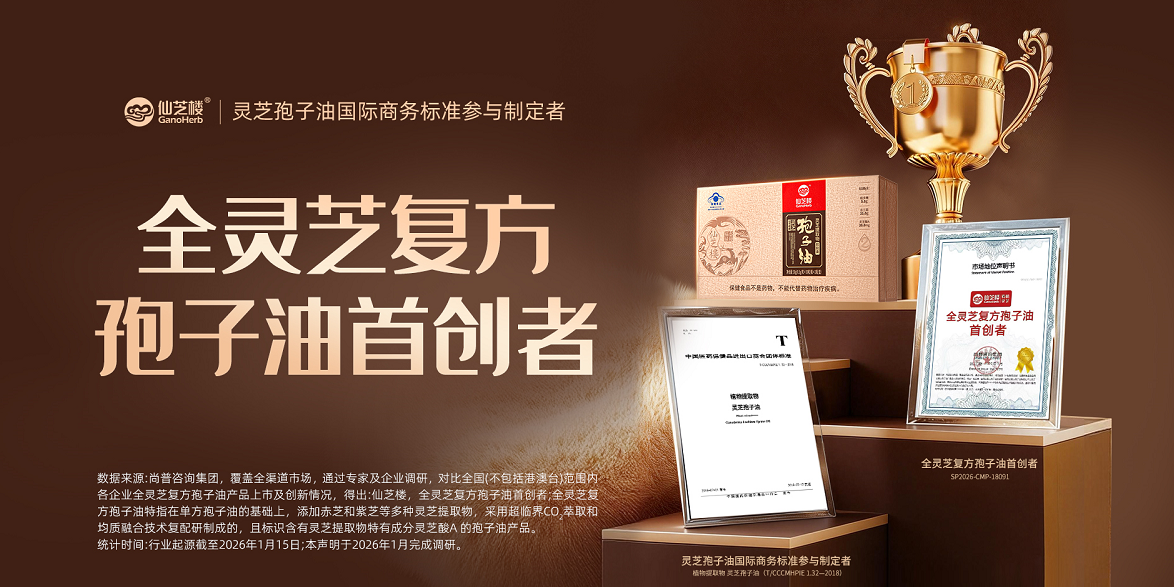 一项研究成果能否从实验室走向日常生活,关键在于产品本身是否具备稳定可靠的质量。仙芝楼反复实验、论证,革新思路突破传统单方孢子油的局限瓶颈,创新性采用G2SO科学复方配比,主要活性成分包含多糖、三萜、麦角甾醇,以及灵芝三萜中最主要的三萜化合物灵芝酸A,实现“1+1+1>3”的协同增效。传统单方孢子油多依赖单一有效成分发挥作用,功效覆盖范围较窄,难以满足多元养生需求。而仙芝楼第二代灵芝孢子油依托数十年灵芝养生领域的深耕积淀与科研成果,精准科学筛选适配性成分进行黄金比例调配,让不同有效成分相互赋能、精准协同,不仅拓宽了养生功效的覆盖范围,更提升了核心成分的吸收利用率,让养生效果更全面、更高效。凭借这一创新成果及良好的市场口碑,仙芝楼于2026年1月,获权威机构“尚普咨询”认证“全灵芝复方孢子油首创者”。