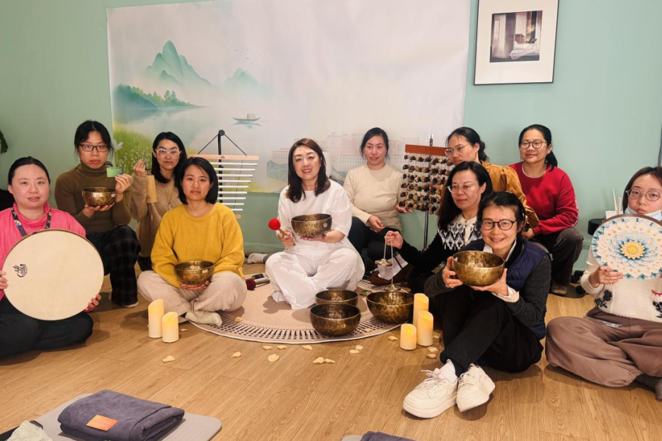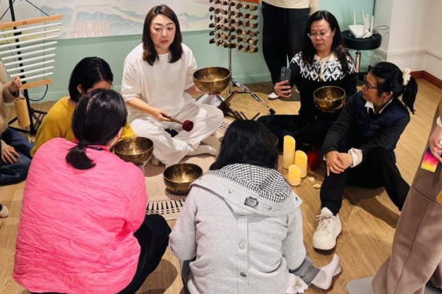 参与者刘女士说:“一开始觉得年纪大了,重返职场没什么希望,所以内心一直很焦虑。但在颂钵声响起那一刻,我感觉到一种久违的平静,同时也给自己增添了一些自信。”