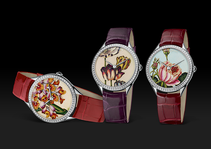 Métiers d’Art 艺术大师系列 Florilège花之神殿,是对花卉植物主题腕表名作的再度演绎,及对自然主义和19世纪英国植物图谱的致敬。这些精美的呈现得益于机刻雕花、大明火掐丝珐琅和珠宝镶嵌等工艺的共通协作,让腕表拥有高于珠宝的装饰性。