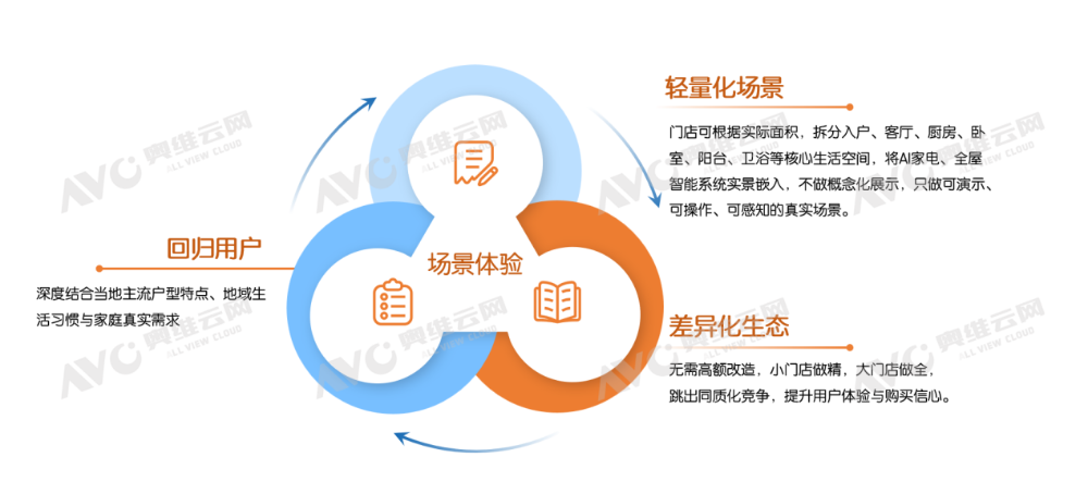 门店可根据实际面积,拆分入户、客厅、厨房、卧室、阳台、卫浴等核心生活空间,将AI家电、全屋智能系统实景嵌入,不做概念化展示,只做可演示、可操作、可感知的真实场景。通过语音控制、一键场景切换、跨设备联动、主动智能服务等功能实景演示,让用户现场体验回家、离家、观影、烹饪、洗护等高频场景的智能便捷,直观感受AI如何解决日常家居痛点。