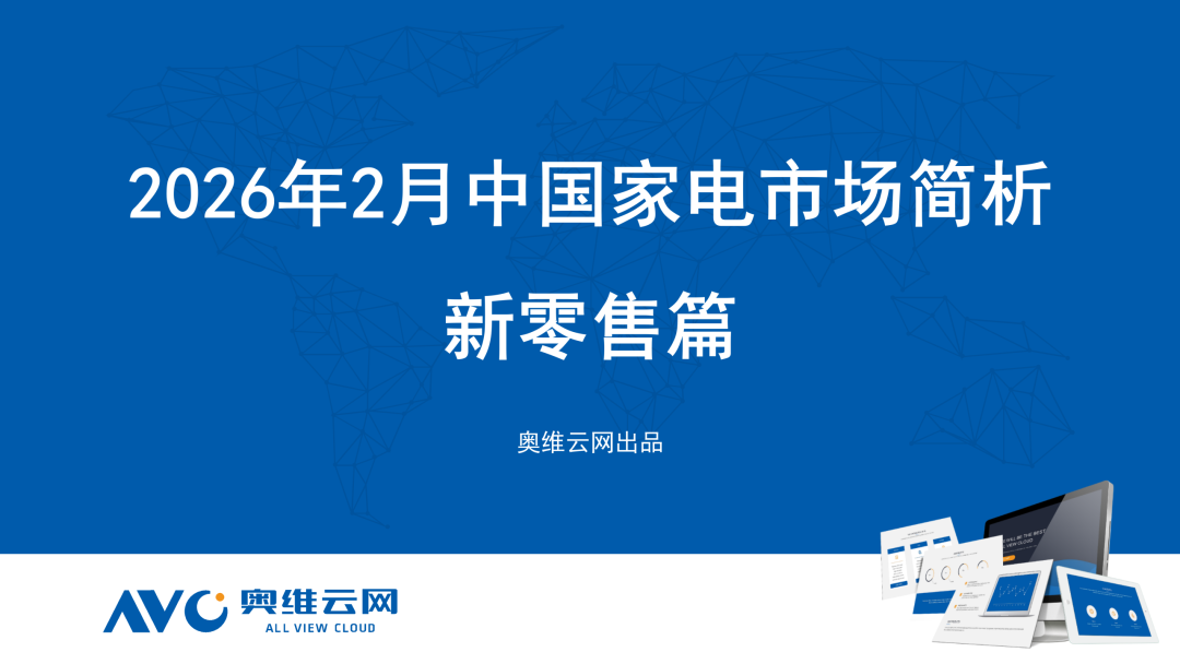据奥维云网(AVC) 新零售市场监测数据显示,2026年2月,主要品类监测零售量规模总计39.9万台,同比-41.3%,零售额规模总计9.9亿元,同比-45.5%。