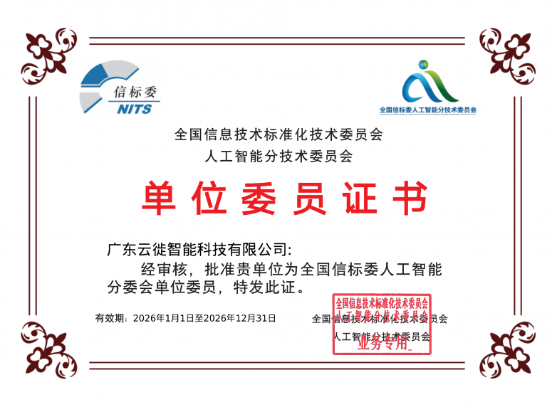 近日,云徙科技通过全国信息技术标准化技术委员会人工智能分技术委员会审核,正式成为该委员会单位委员,这标志着公司在人工智能领域的实践积累和技术探索,获得了国家级标准化组织的认可。