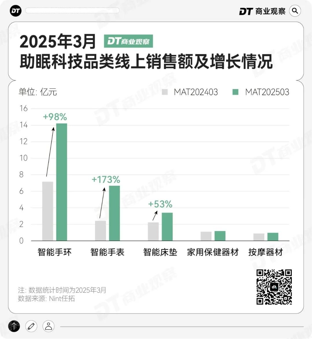 根据任拓数据,截至2025年3月,国内线上睡眠经济市场规模已超500亿,围绕不同的睡眠痛点,形成了三条路径——从改善睡眠环境和基础床品,到选购合适的保健品调节身体机能,再到用科技手段监测、甚至干预睡眠过程。