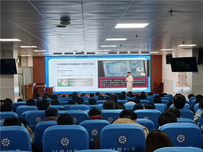 结合高校学生用眼健康现状,黎海平院长还为航海工程学院的同学们带来了一场专业实用的爱眼科普讲座。讲座聚焦大学生群体高发的屈光不正、干眼症两大眼部问题,从疾病成因、日常预防、科学治疗等方面展开系统讲解,同时分享了干眼日常护理等实用护眼技巧。讲座结束后,黎海平院长与现场同学开展互动交流,针对同学们提出的近视矫正、视疲劳缓解、美瞳佩戴等问题逐一细致解答,为同学们提供个性化的眼健康指导,帮助大家树立科学的护眼理念,掌握可落地的护眼方法。