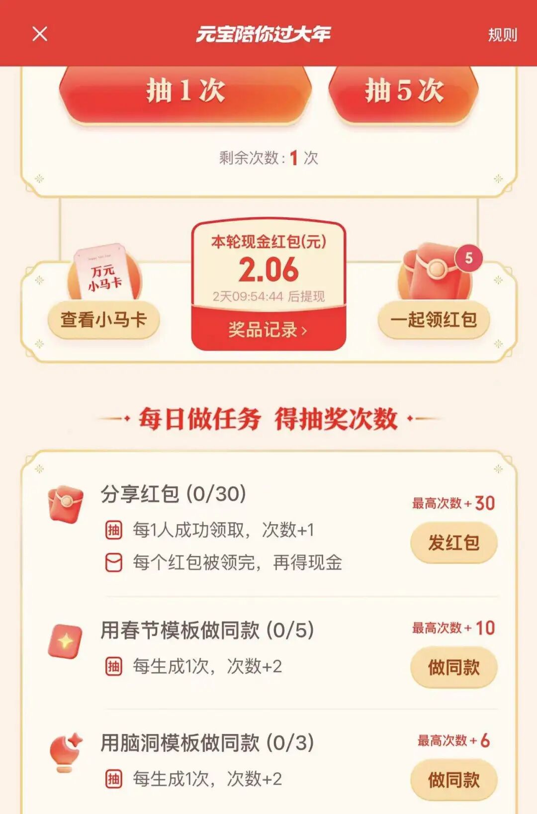 2025年初,元宝的营销力度可以和双11期间的淘宝媲美,无论是腾讯系应用还是第三方平台,广告随处可见。2026年春节期间,其推出了社交功能“元宝派”、启动红包玩法,相当于将给平台的广告费用直接发给了用户本人。