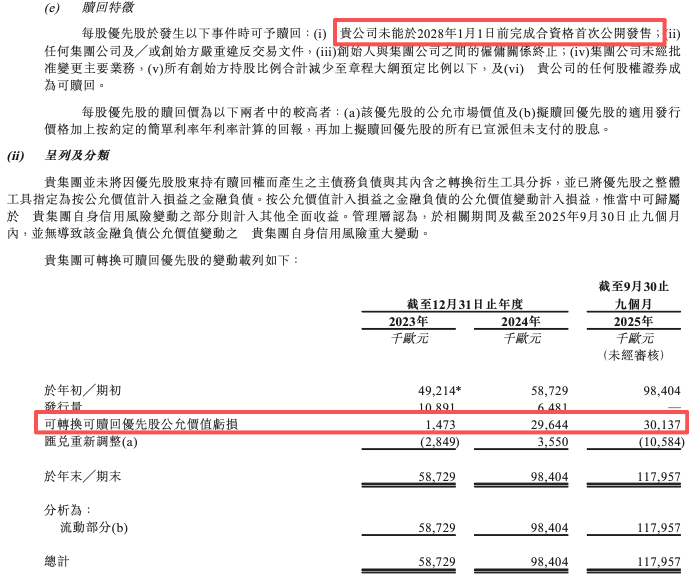 然而,仔细拆解财务数据可以发现,这种亏损主要源于非现金性质的会计处理,而非主营业务陷入泥潭。亏损的核心推手有二:一是 “可转换可赎回优先股的公允价值亏损”,二是“以股份支付的薪酬”。