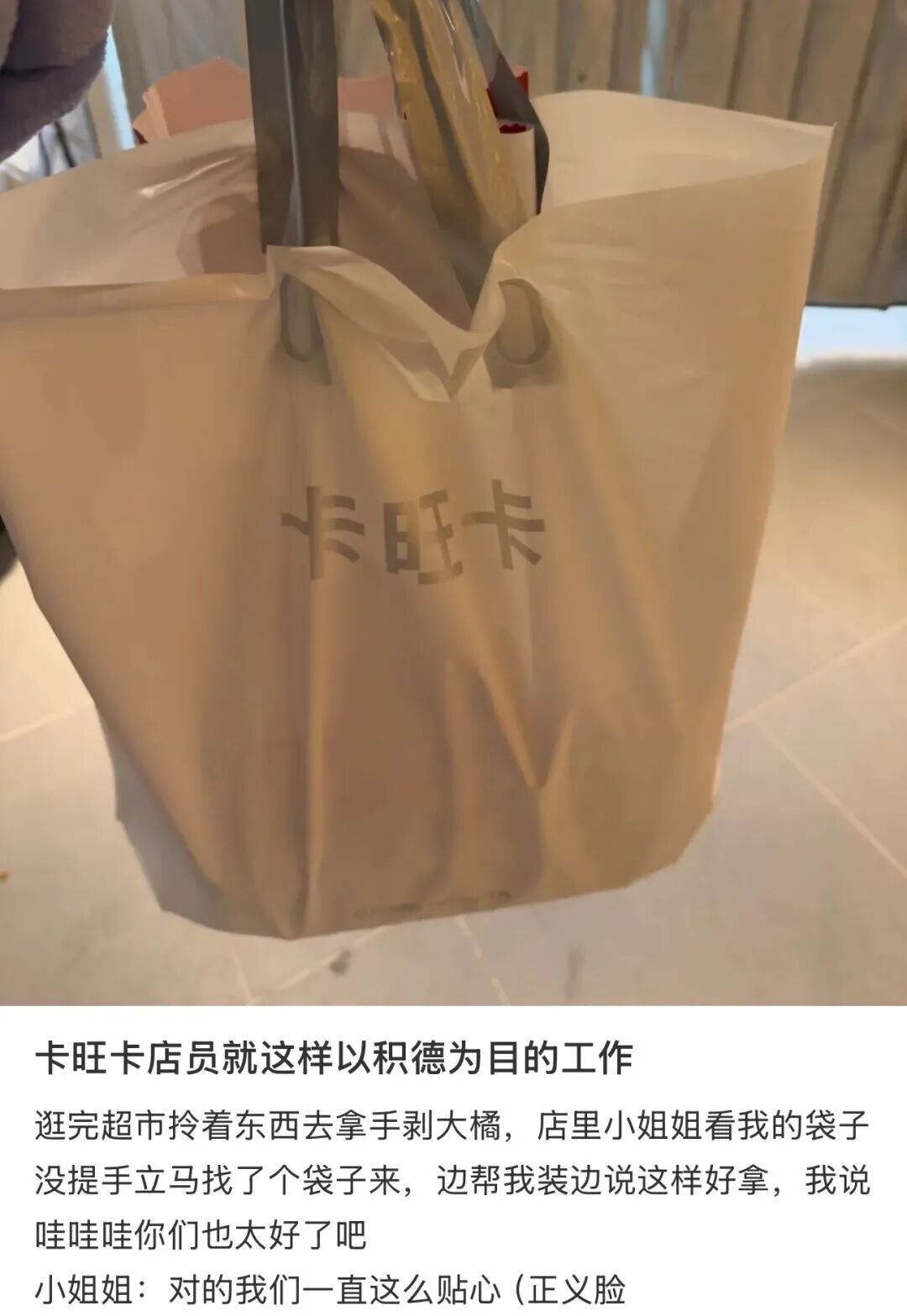 小元来自安徽合肥,这里成长出的奶茶品牌卡旺卡,在网上除了“安徽之光”,还被戏称为奶茶界的海底捞。卡旺卡门店以周到的服务著称,甚至有人说:“店员是以积德为目的在工作”——单独给鼻炎顾客拿纸巾、给赶车的顾客装冰杯……
