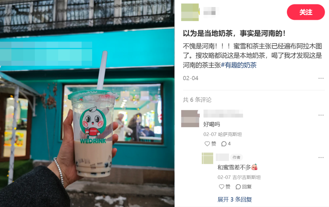 目前,新疆是茶主张在国内最主要的市场,品牌现存的360家门店中,新疆门店占比过半。在临近的哈萨克斯坦,茶主张的海外版本WEDRINK在阿拉木图的门店也拥有不少的客流。