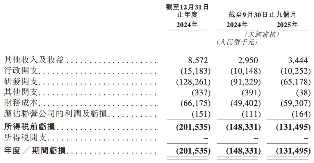作为一家典型的18A递表企业,维眸生物至今未产生任何营业收入。财务数据显示,2024年维眸生物的净亏损为2.02亿元,而2025年前九个月的净亏损已达到1.31亿元。