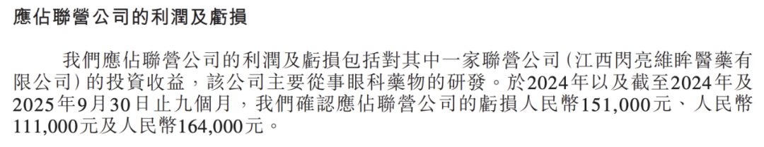 不过招股书显示,2025年前九个月维眸生物应占联营公司江西闪亮维眸的损益为-16.4万元,表明这些布局仍处于投入期。