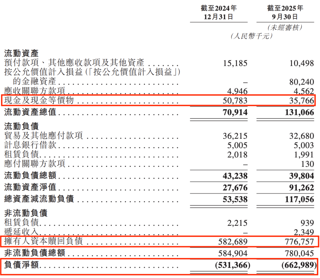 与此同时,公司的负债端承载着沉重的压力,负债净额高达6.63亿元。这一负债结构中,拥有人资本赎回负债占比相当高。