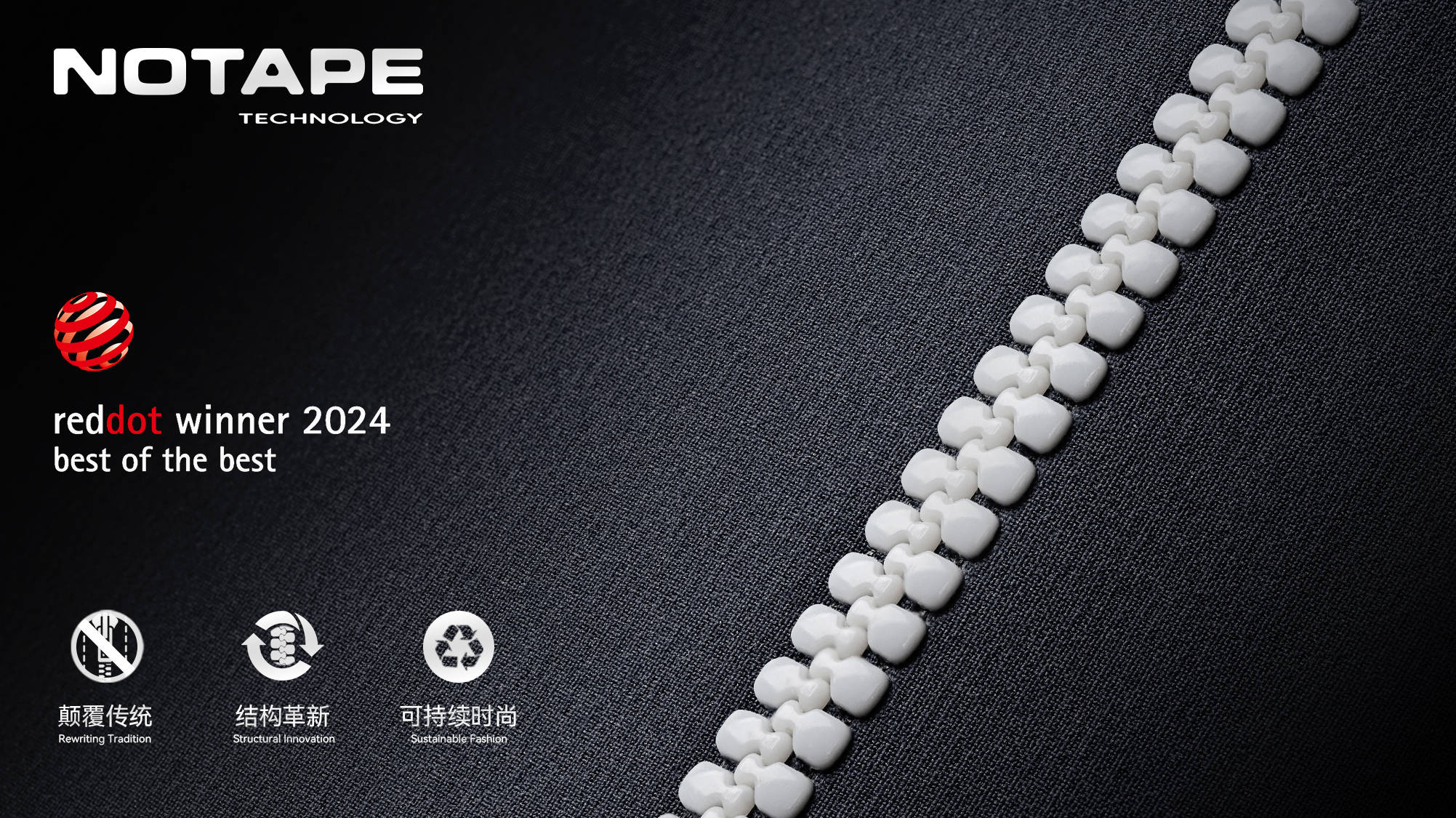 NOTAPE™ 的核心突破,在于其提出并实现了“无布带、无车缝”的拉链结构逻辑。