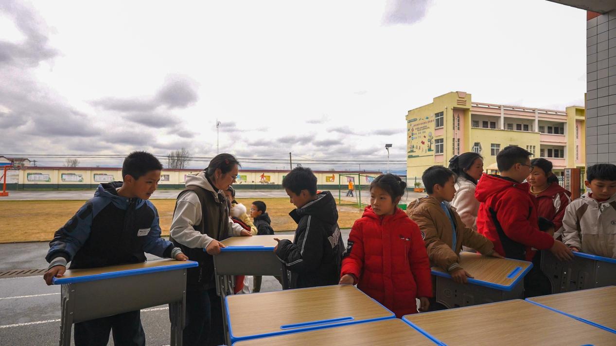 “看!我一个人就能搬得动新桌子!”3月17日下午,陕西汉中城固县沙河营镇中心小学四年级的刘同学和伙伴们在欢声笑语中上了一堂别样的“劳动课”:每位同学都领取到了崭新的升降课桌椅,搬进教室后整齐排列,孩子们兴奋地抚摸着新课桌,在老师的帮助下调整舒适高度。